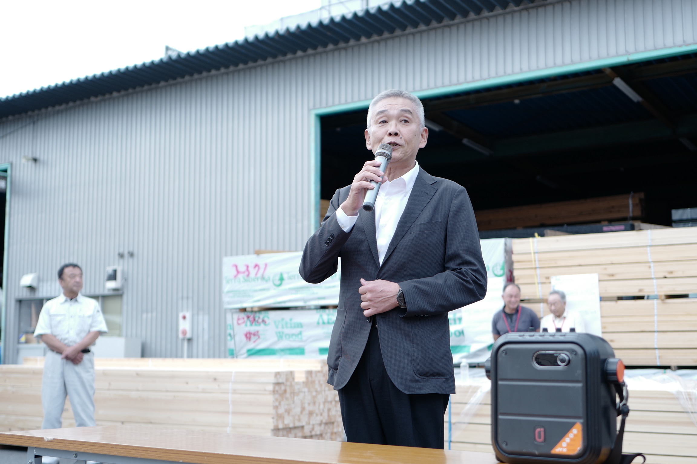 「まずは、柏木材センター親和会様が結成満58周年を迎えられましたこと、心よりお祝い申し上げます。誠におめでとうございます。また、柏センターに対しましてもこれまで温かいご理解とご協力を賜り、この場をお借りして厚く御礼申し上げます。