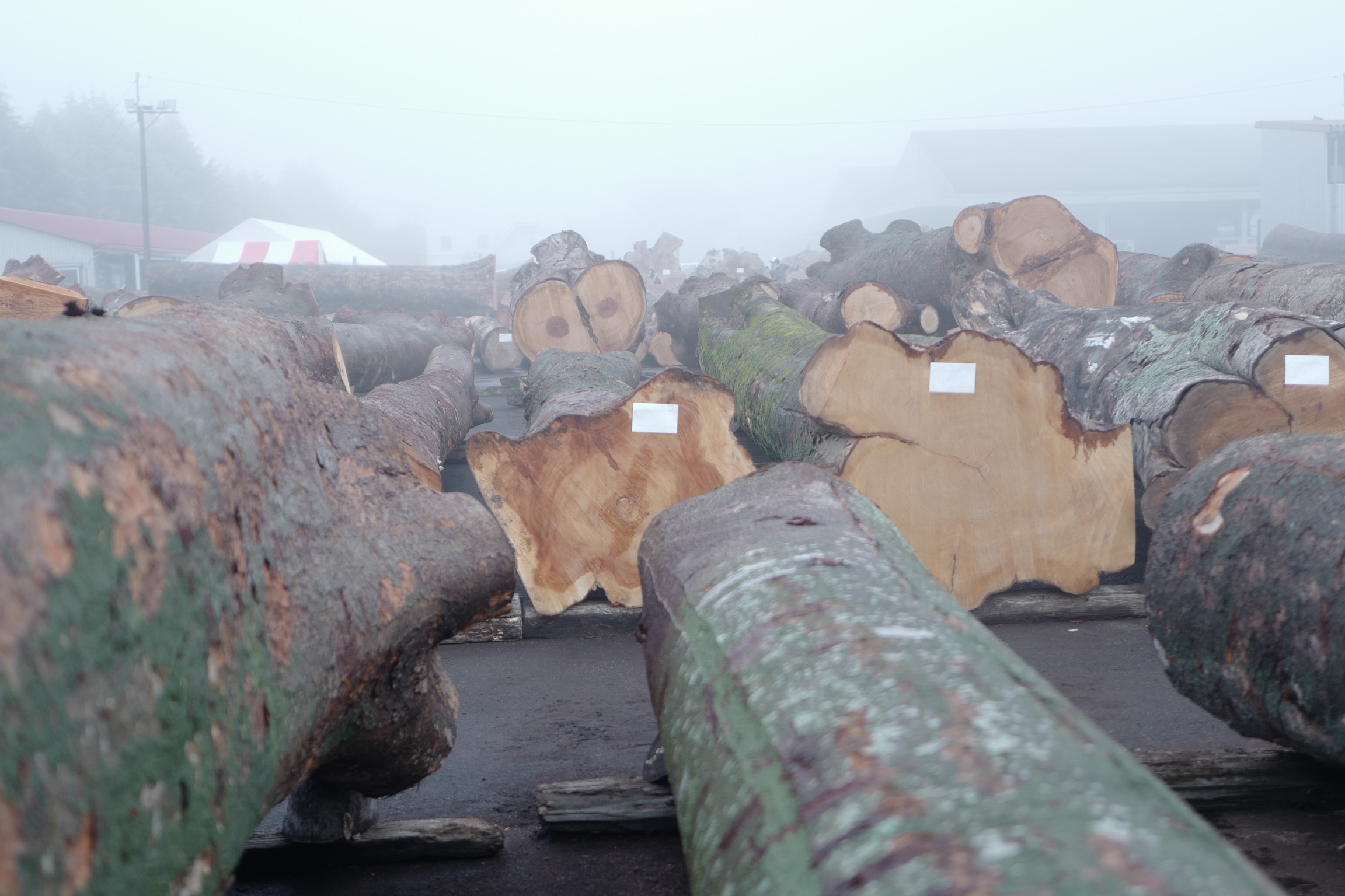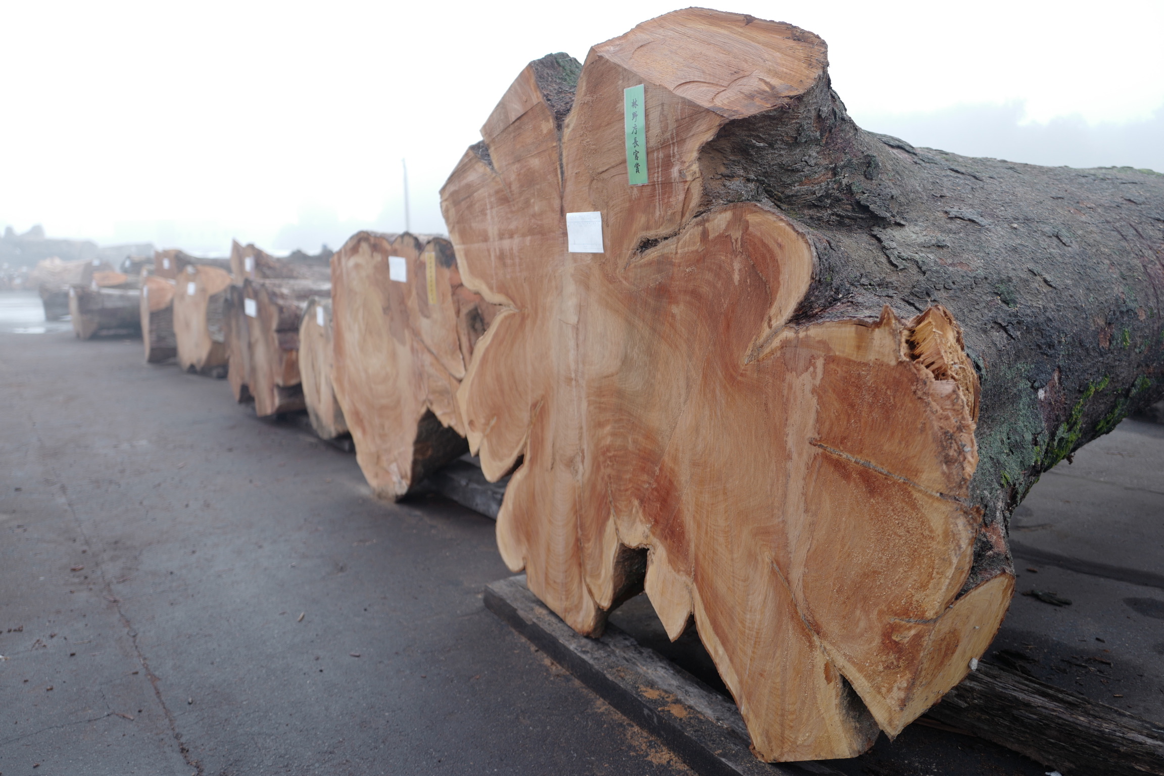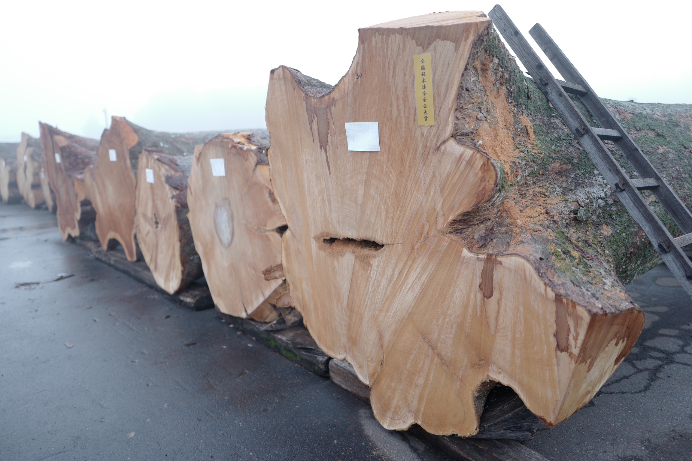大径の良材が入荷し、今季いちばんの数量となる銘木が並びました。各地から届けられた銘木が整然と並ぶ様子は、節目の年にふさわしい充実した内容となりました。