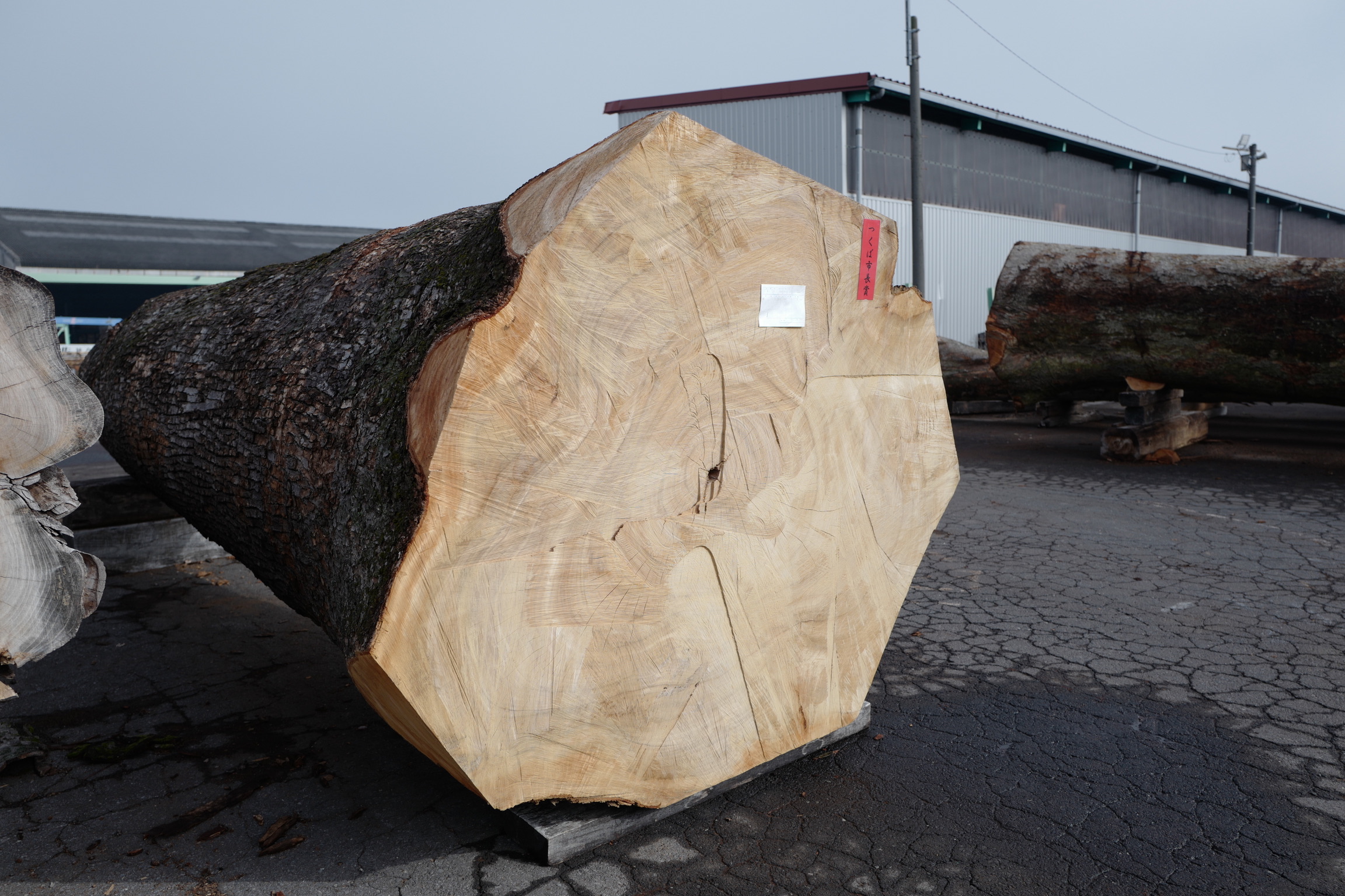 茨城県知事賞には、元口の切り口にチェーンソーの跡がほとんど付いていない点が評価された、吉田製材所のケヤキ丸太(6m×130cm、10㎥)が選ばれました。