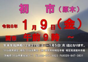 相互筑波銘木市場 2026年 1月9日(金)初市 開催!